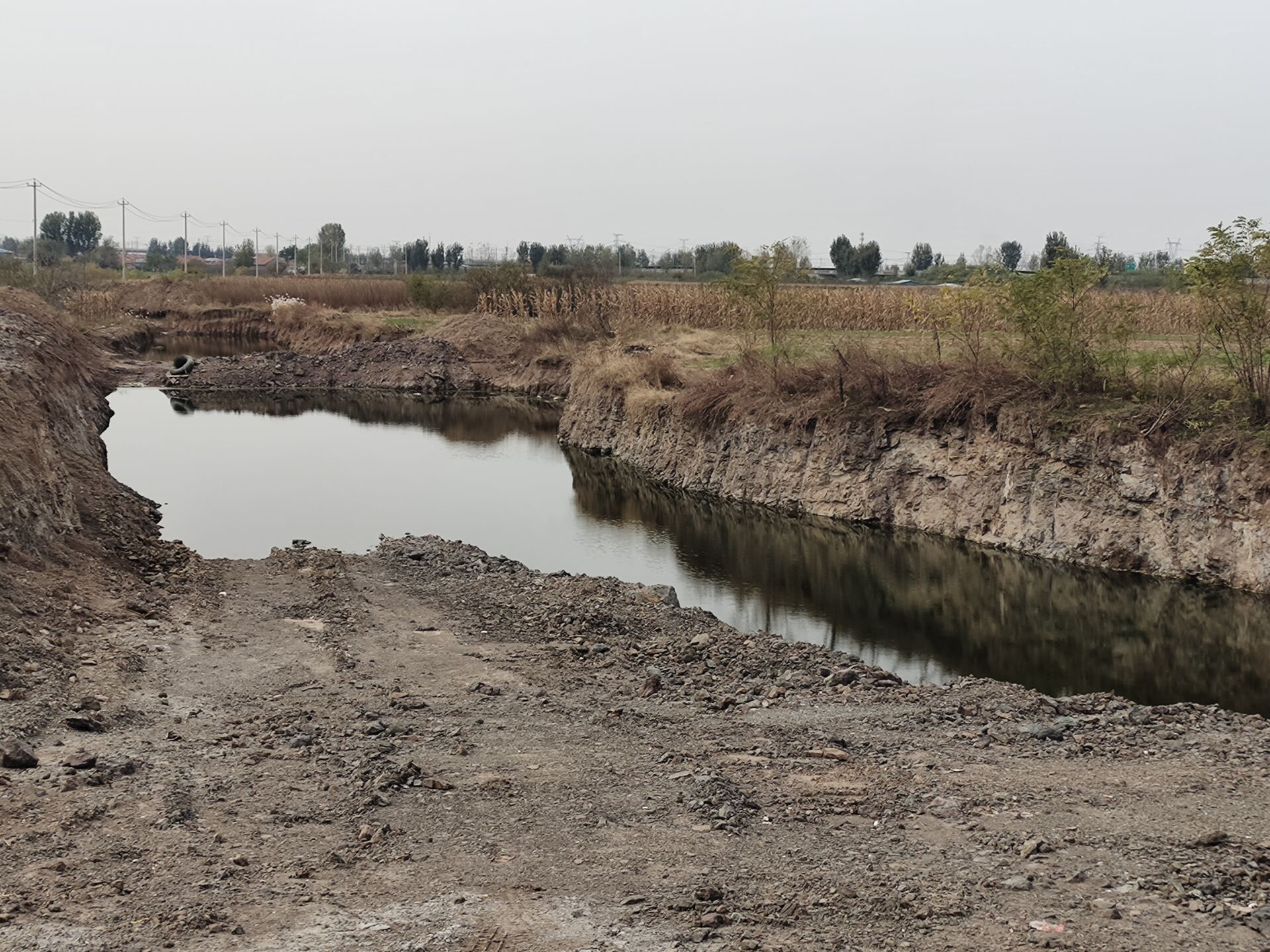 即墨一村庄用建筑垃圾填埋池塘村民担心污染生态环境……